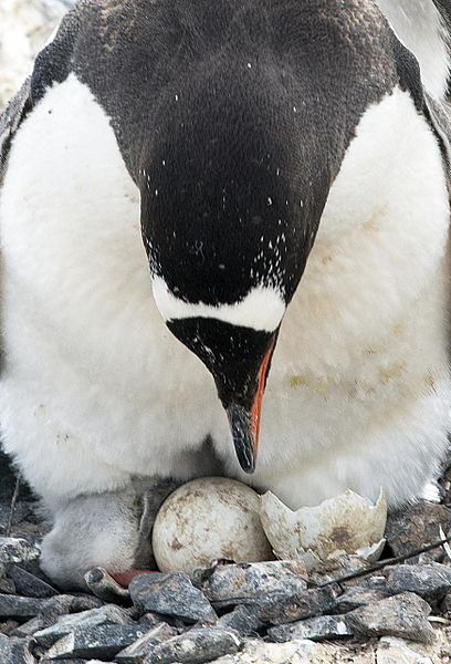 Antarctic and sub-Antarctic eggs and chicks are preyed upon by predatory birds such as the Antarctic skua, sheathbill, and giant petrel.
