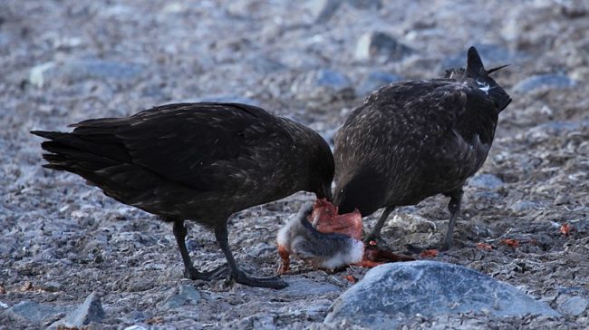 Skuas eating a penguin by Liam Quinn / CC BY