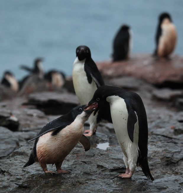 Adelie Penguin Feeding Food To The Chick by Liam Quinn / CC BY