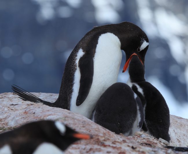 They conserve energy during these fasting days. Baby penguin gets shifted to mother penguin from father when female returns. The process goes quickly and carefully. They don’t let the chick to touch the ice while transferring.