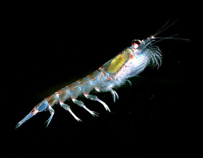 Krill: These are shrimp-like crustaceans that grow up to 2 inches long and serve as food for penguins or other sea creatures. The krill may be one of the most abundant organisms on the planet for seabirds.