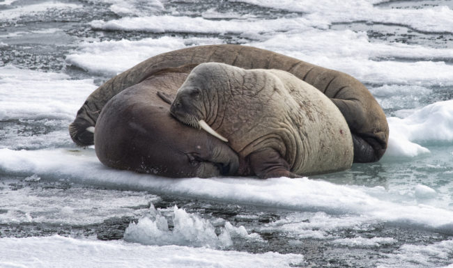 Also, when polar bears are unable to hunt their usual prey, they hunt on land mammals when they are scavenging together in the Arctic.