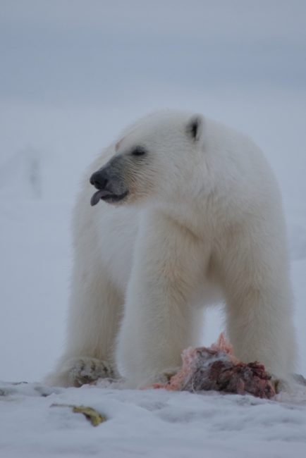 They usually leave the carcasses to the other small predator like a fox and baby polar bears.